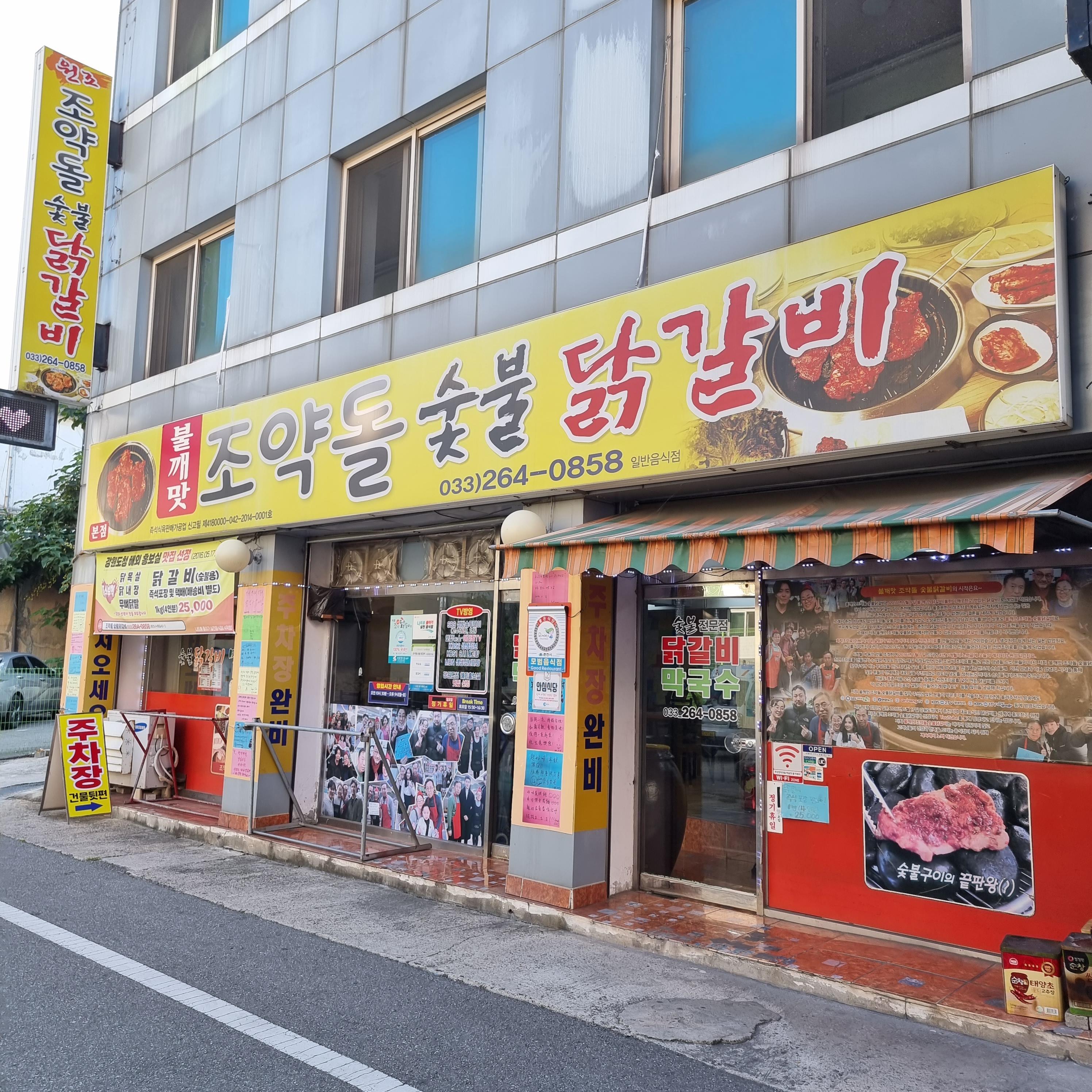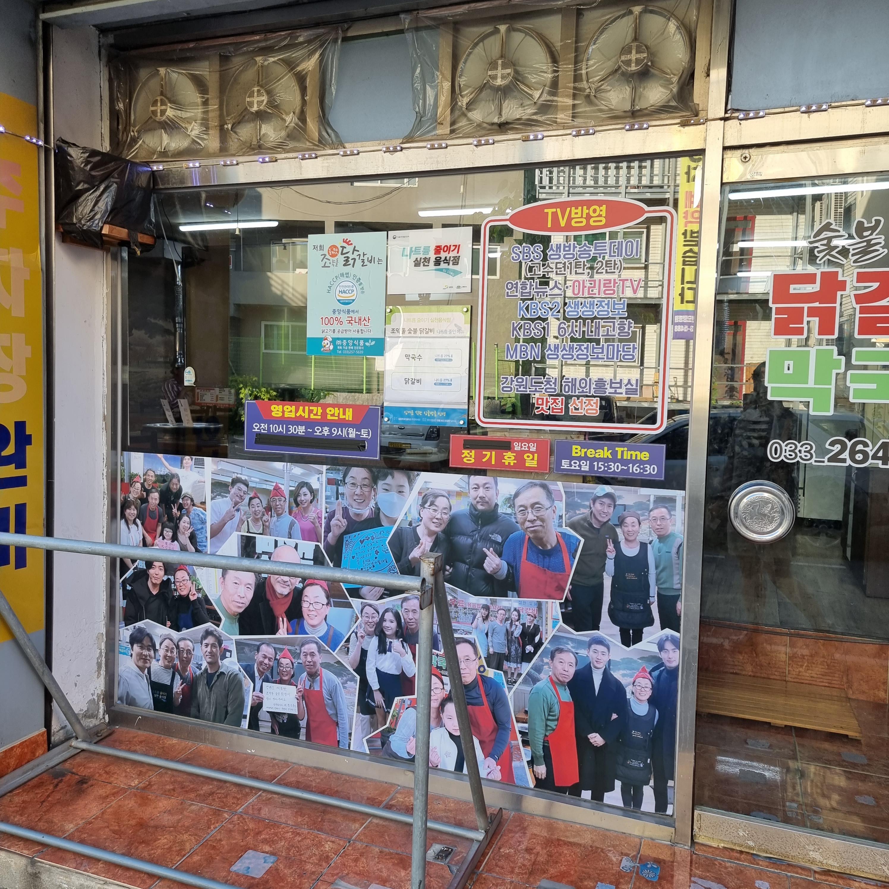 닭갈비집을 찾아보던 중 이 가게에 관심이 갔던 이유는 외관이다. 정말 딱 봐도 맛집의 포스가 풍기지 않는가? 요즘의 것 같지 않은 간판과 훈장처럼 붙어있는 각종 인증샷, tv방영 정보들! 하지만 나름 정돈된 모습이다. 구글맵 평점도 높았지만 이러한 외관이라면 실패하기가 쉽지않다. 게다가 불깨맛? 조약돌? 당췌 무슨 소리인 걸까? 호기심을 자극한다. 🤔