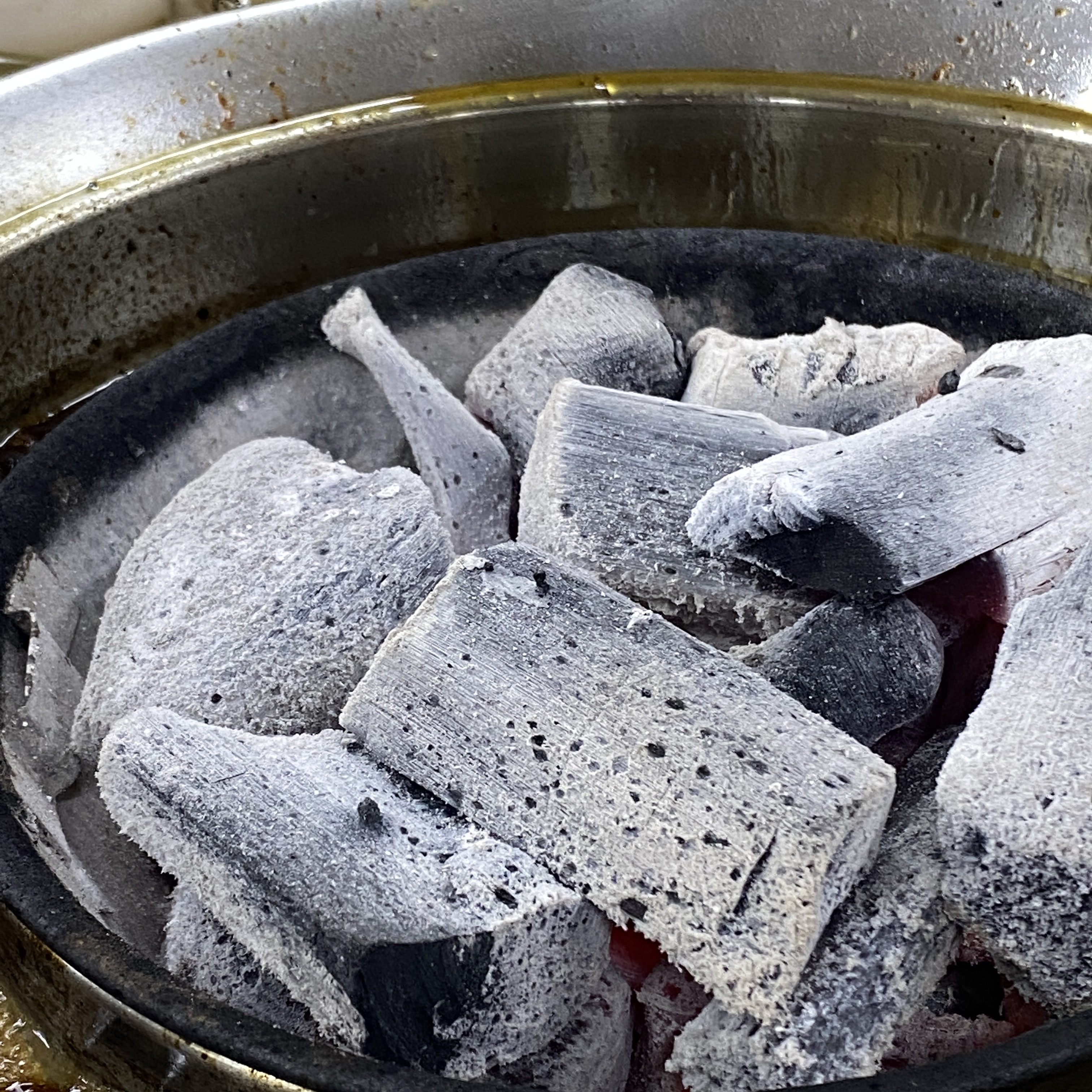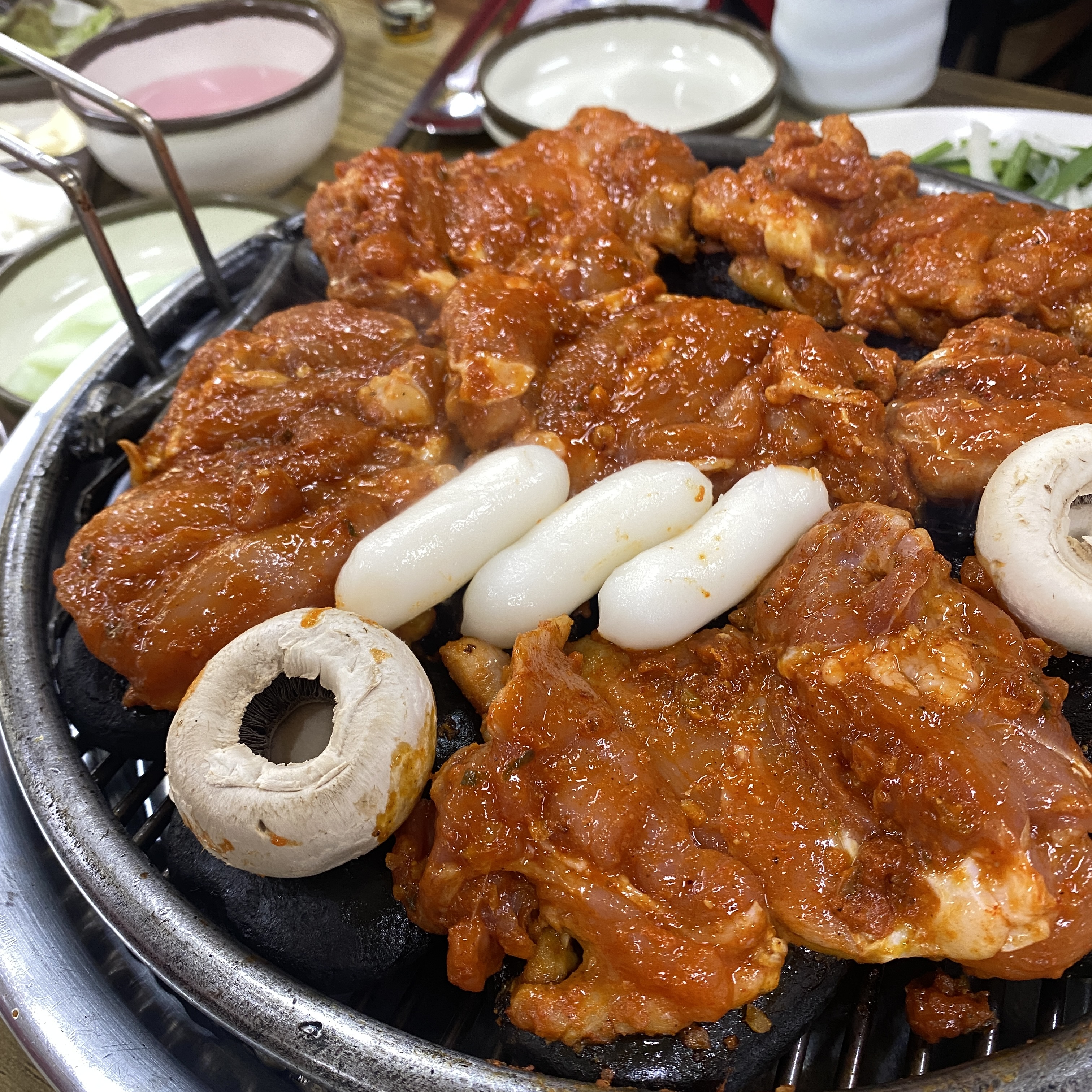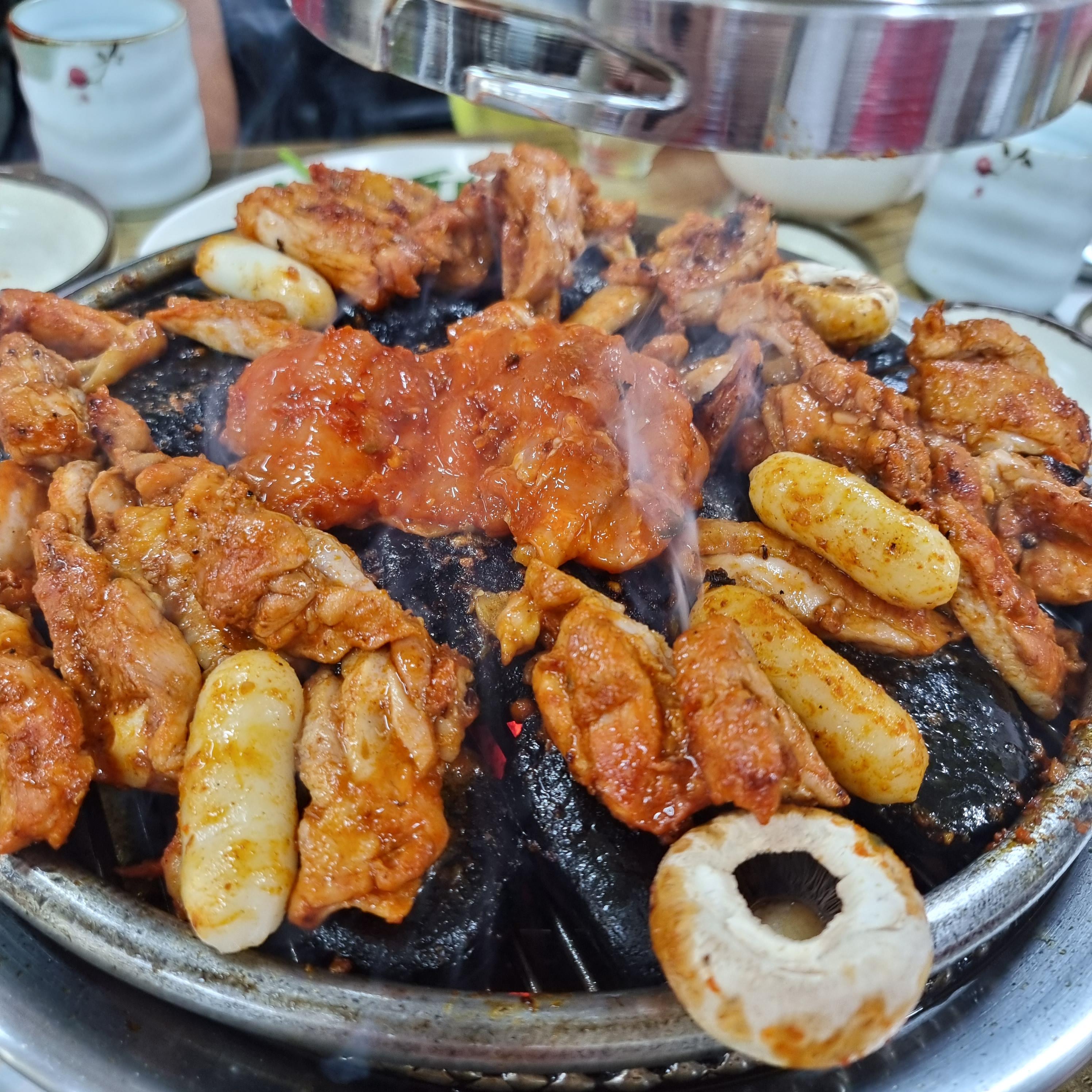 숯이 아주 좋다. 이런 좋은 숯이 있는 고깃집에 갈 때마다 탐이 난다. ㅎㅎ 캠핑 가서 쓰고 싶은 마음에. 화력도 좋고 오래간다. 근데 다 먹어서 불판을 뺐냐고? 아니. 닭갈비는 1인분 했지만 다른 메뉴는 1인분 안했으니까요.. 😶
