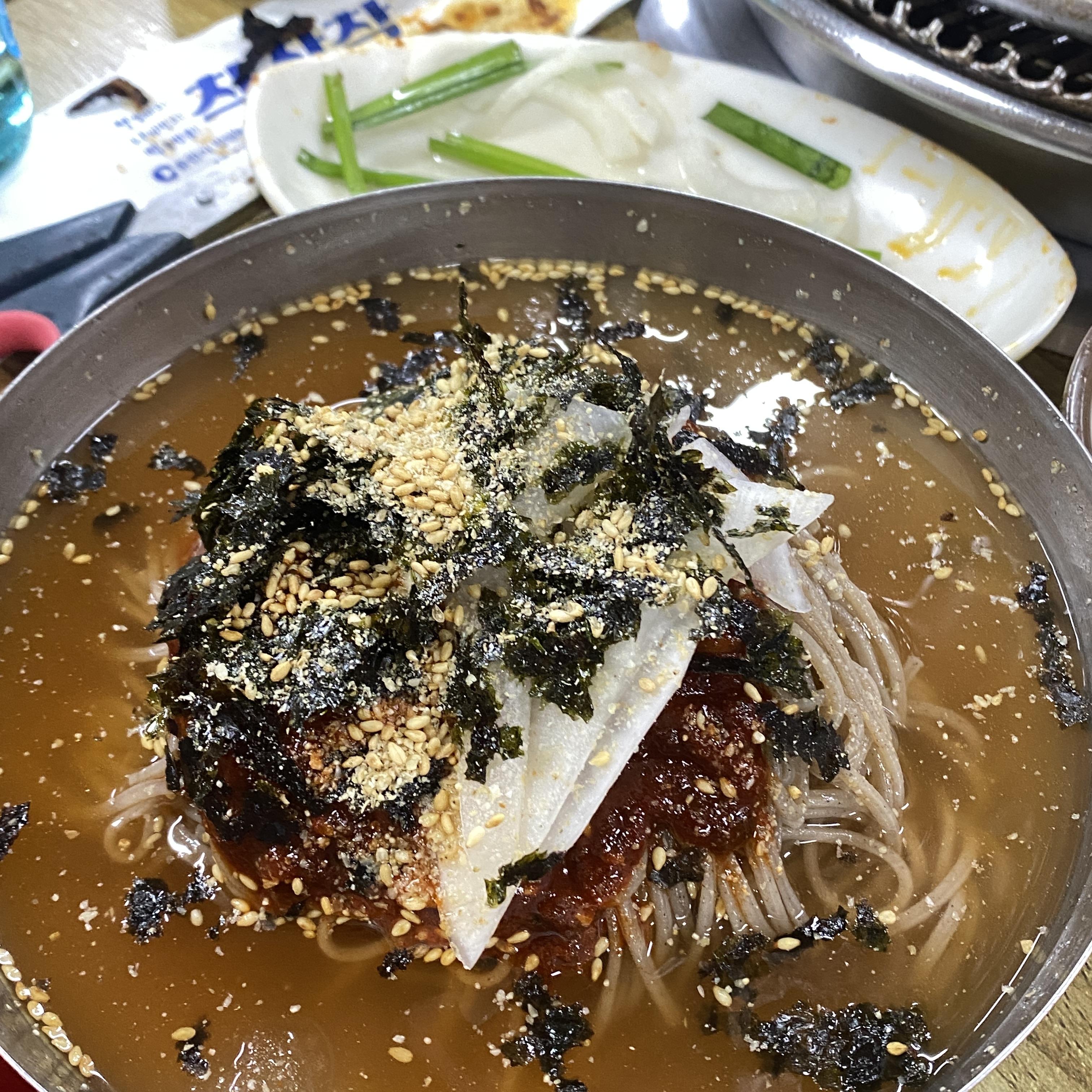 자, 춘천 와서 닭갈비도 먹었는데 막국수를 안 먹을 수 없지. 후식은 비빔막국수와 물 막국수를 시켰다. 메밀이 들어간 면이라 탱글탱글하지는 않다. 물, 비빔 둘 다 나쁘지는 않았지만 맵고 기름진 닭갈비를 먹고 보통은 먹을 텐데 좀 더 시원하고 개운한 국물이었으면 더 좋았을 것 같다.