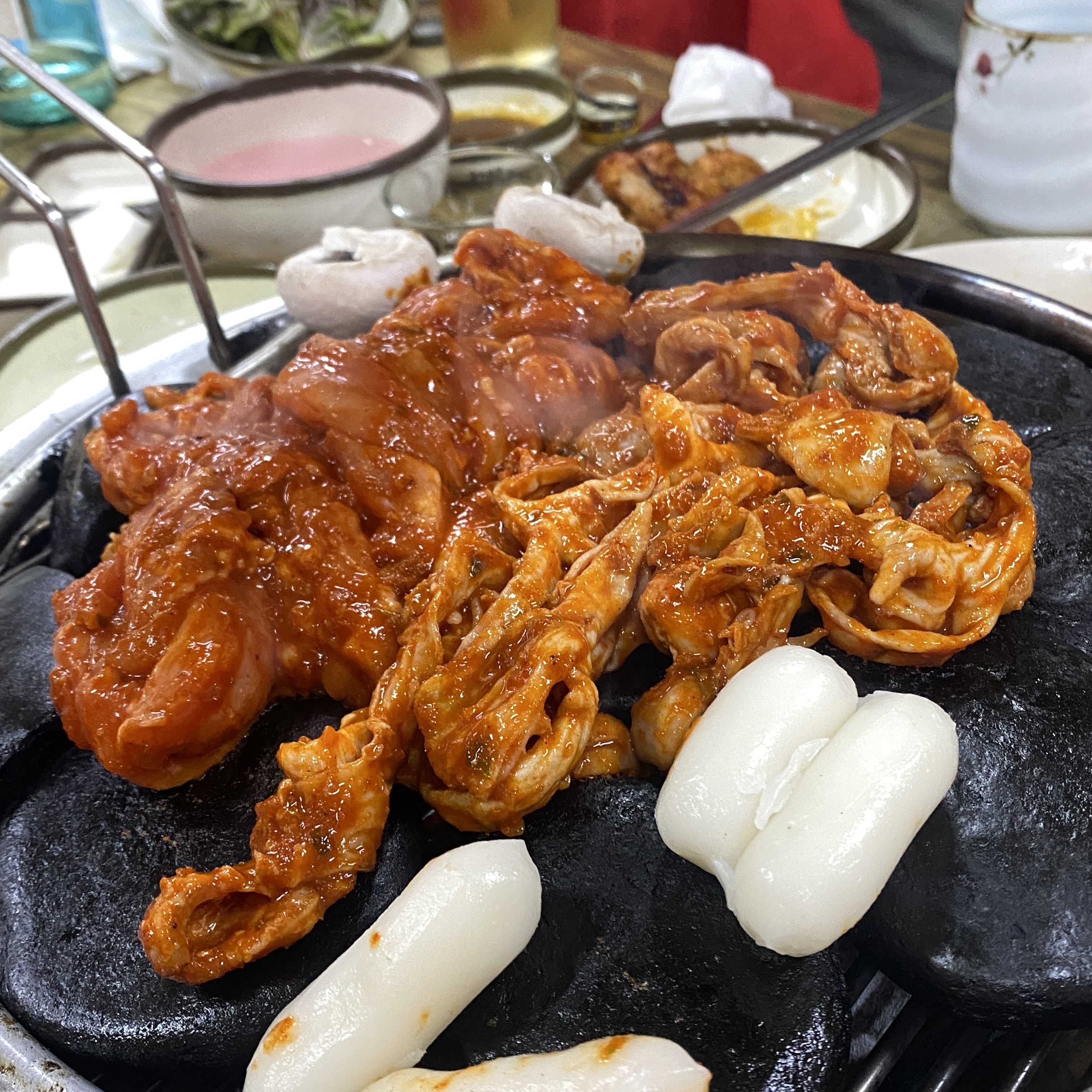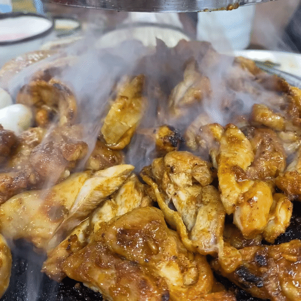닭 모가지의 살과 껍질과 지방층까지 연결된 부위라고 한다. 닭갈비보다 더 부들부들하고 이가 없어도 머을 수 있을 것 같다. 닭 내장은 많이 굽지 않고 데치듯이 구워 먹으면 되는데, 식감이 좋다! 꼬들꼬들하니 씹는 맛이 있고, 더 매콤하게 개운한 맛이다.