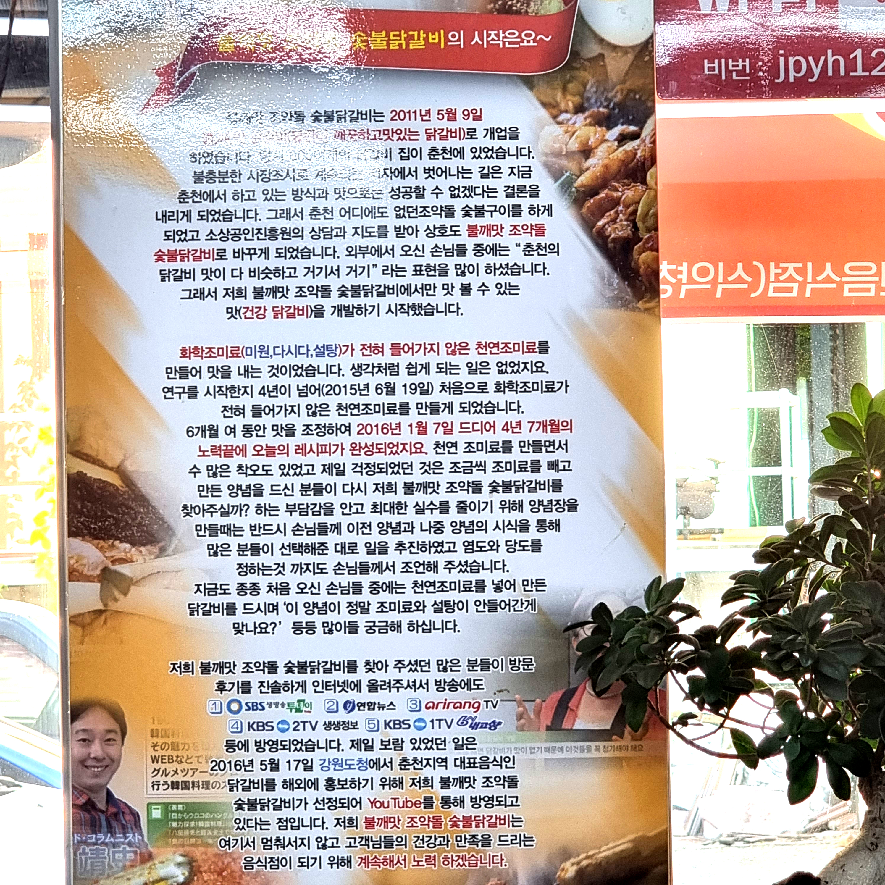 주인 아저씨의 프라이드가 느껴지는 부분이다. 요약하면 수많은 닭갈비집들 사이에서 살아남기 위해 뼈를 깎는 노력을 거쳐 최고가 될 수 있었다는 story.. 춘천에 닭갈비집이 정말 많긴 많다. 그 사이에서 오랜 기간 명맥을 유지했다는 것 만으로도 인정해줄 만하다. 궁금했던 불깨맛의 뜻은 불판이 깨끗하고 맛있는 닭갈비 라고 해서 불깨맛이라고.. (우리나라 사람들 참~ 줄임말 좋아해)